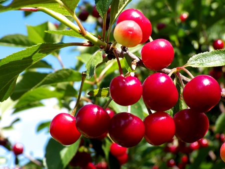 Tree branch with cherry fruite over natural background