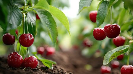 Vibrant Cherry Orchard: A Seasonal Abundance of Ripe Fruit