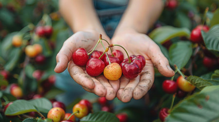 Delicious ripe cherries, rich in essential vitamins. A juicy and healthy snack for vegetarians. Boost your health with ripe cherries.