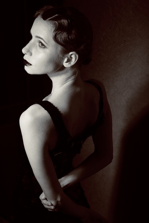 Vintage retro portrait of a woman costumed in 1920s style