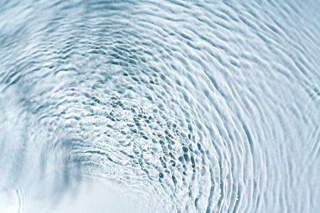 Rippled surface of clear water on light blue background, closeup