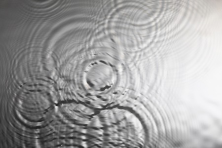 Wavy circles on the water with glare. black and white photo. liquid background. side view close up.