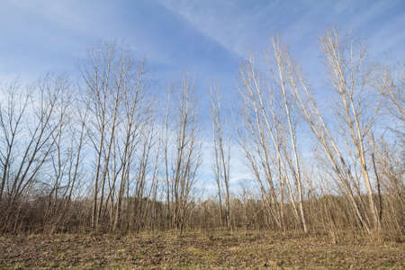 Forest of birch trees standing in the suboticka pescara, a sandland in Subotica, Norther Serbia. birch tree is a thin leaved wood growing in Europe.