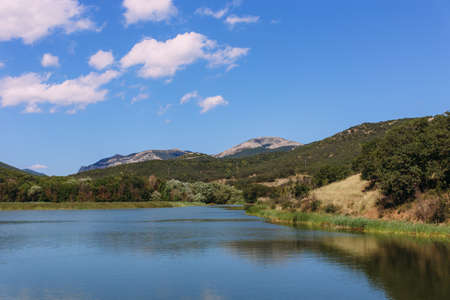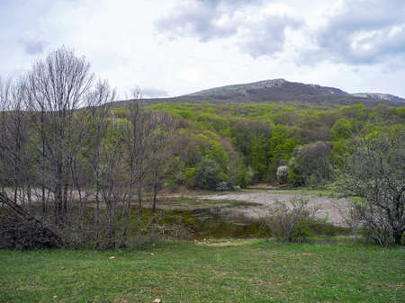 Beautiful mountain landscape with small lake in spring. Crimean mountains