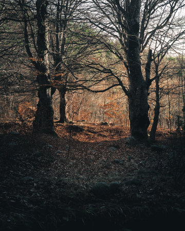 Colorful trees and leaves in autumn in the Montseny Natural Park in Barcelona, Spain