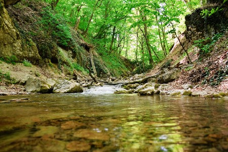 The mountain river Auzun-Uzen, the Great Crimean Canyon, the Crimean peninsula, the Bakhchisarai district, the village of Sokolinoe