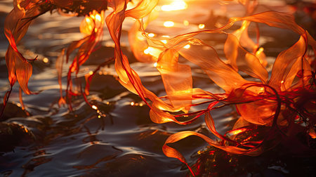 Red algae rhodophyta. Abstract close-up, selective focus, and creative lighting.