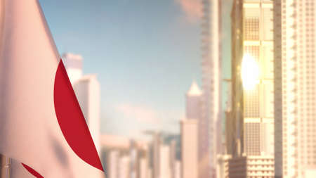 flag of Japan on city skyscrapers buildings vanilla sundown backdrop for national holiday - abstract 3D rendering