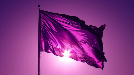 As if in slow motion a flag of deep purple rises gracefully its corners fluttering with graceful elegance