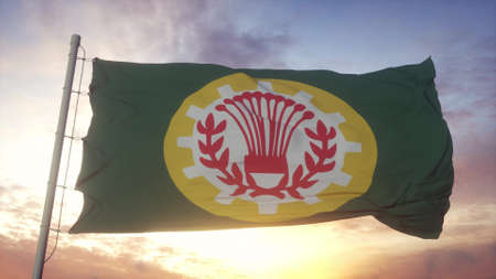 Dakahlia flag, Egypt, waving in the wind, sky and sun background. 3d rendering
