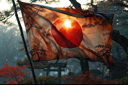flag of Japan at sunny day, good season symbol - nature 3D illustration