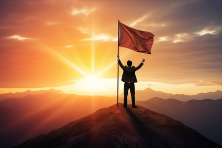 Conquering Peaks of Success: A Businessman's Flag-Bearing Journey towards Leadership