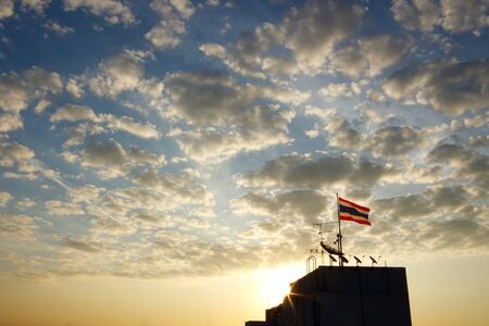 International Flags blowing in the wind with twilight background in Bangkok Thailand