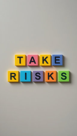 This colorful arrangement of blocks spells Take Risks, representing a motivational concept. It encourages self-growth, creativity, and confidence in decision-making.
