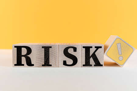 Wooden blocks with the word Risk. The concept of risk