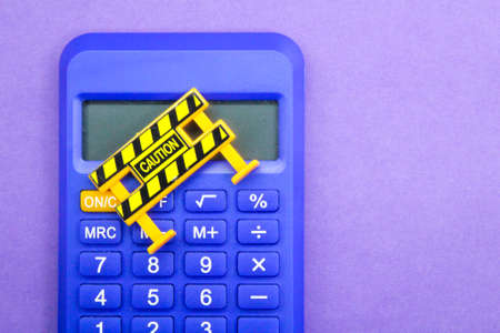 calculator and caution sign. careful computational concepts. calculator and caution sign