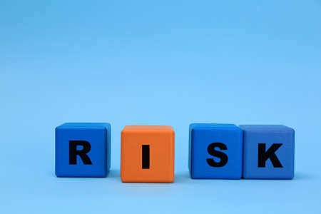 Color wooden cubes with word Risk on light blue background