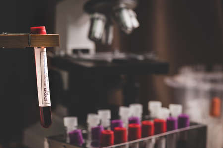 COVID-19 test and laboratory sample of blood testing for diagnosis new Corona virus infection with laboratory background. Pandemic infectious concept