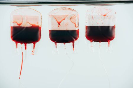 Plastic blood bags with packed cells isolated on white background