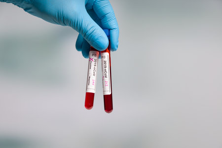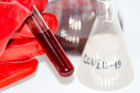 COVID-19 blood test in test-tube, sample of blood testing for diagnosis new Corona virus infection
