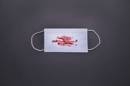 Protective mask with blood spitting on dark background