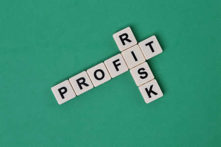 Top view of square letters with text PROFIT and RISK. Business concept.