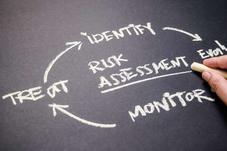 Closeup hand of man write the cycle chart and concept of risk assessment on blackboard