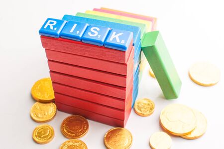 Colorful wooden blocks with the words risk, risk, risk, risk, risk and risk