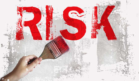 Red word RISK written with paintbrush. Planning, risk management or insurance and business strategy concept.