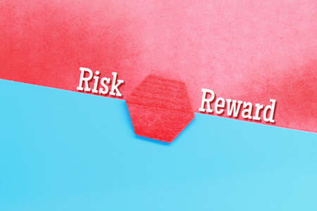 hexagon, red and blue background with the word risk reward