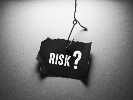 Black and white photo of a piece of paper with the word RISK