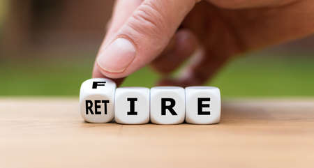 Retire or get fired. Hand turns a dice and changes the word fire to retire.