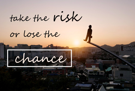 Take the risk or lose the chance. Motivational phrase about decisions of business, studies, sport, challenging, dreams.