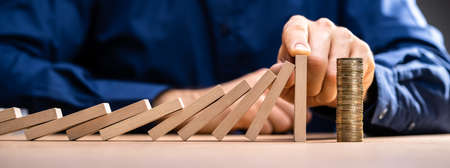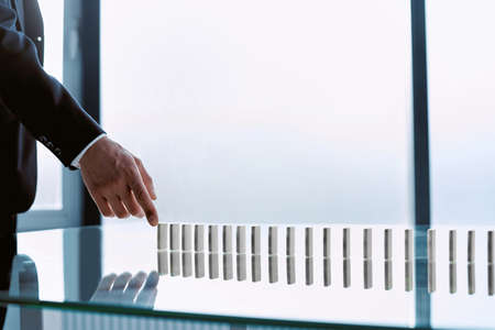 Business control concept by stopping domino effect