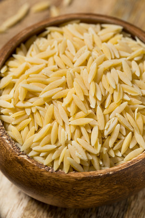 Organic Dried Orzo Pasta in a Bowl to Cook