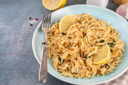 Delicious orzo pasta served with a savory sauce