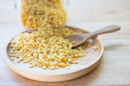 Dried or roasted or fried mung dal a appetizer snack on wooden dish
