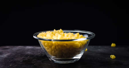 Raw Pasta in bowl isolated on black background.