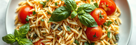 Fresh orzo pasta salad with cherry tomatoes and basil for a delightful summer meal