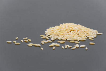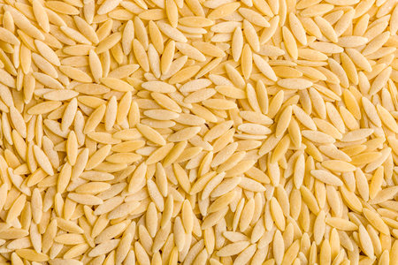 Orzo, kritharaki, risoni pasta. Uncooked dry pasta. Top view.