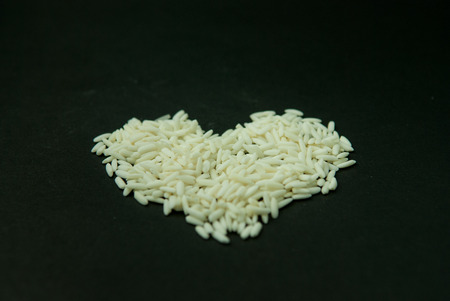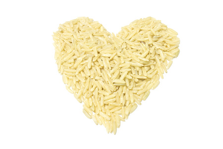 Brown rice in a heart shape on white background
