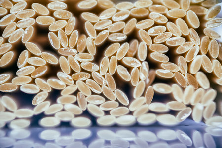 Raw fresh and healthy dry organic barley noodle foot background