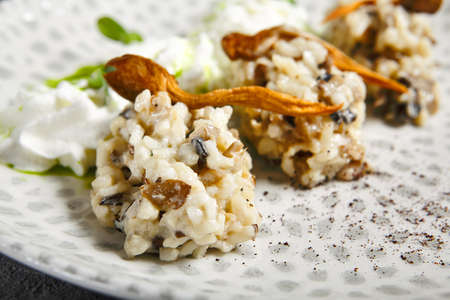 european and mediterranean cuisine styled concept - mushroom risotto recipe, elegant visuals
