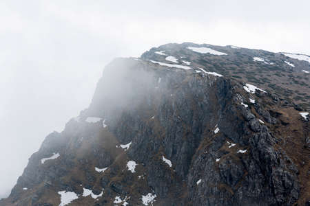 Mountain peak in the clouds on a foggy day. Caucasus, Russia