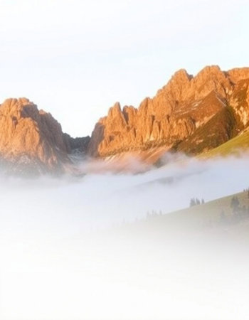 Mountain landscape with fog and clouds. Dolomites, Italy