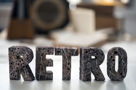 Retro inscription made of stone on a blurred background