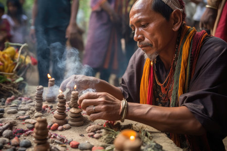 an ethnic man offering copal incense to his gods, created with generative ai