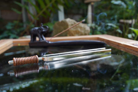 Rapee ceremony. Healing herbs and dust preparing to snuff by tepi bamboo handmade pipe