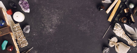 Healing chakra crystal grid therapy. Rituals with gemstones and aromatherapy for wellness, healing, meditation