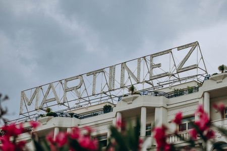 Cannes, France - 30 June 2023: Close-up of the facade of Martinez hotel in Cannes